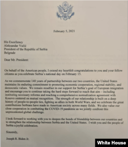 Thirrja ishte pjesë e një letre që presidenti Biden i dërgoi presidentit serb Aleksandër Vuçiç, me rastin e ditës së pavarësisë së Serbisë.