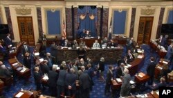 Të martën, vetëm gjashtë nga 50 senatorë republikanë votuan së bashku me demokratët për të përcaktuar se gjyqi ishte në përputhje me Kushtetutën dhe mund të vazhdonte edhe pse mandati i zotit Trump përfundoi në 20 janar.