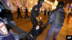 Në qytetin e dytë më të madh rus, Shën Pjetërburg, gazetarët e AFP-së panë arrestime të shumta, ndër ta edhe një protestues që po e tërhiqnin zvarrë në rrugë.
