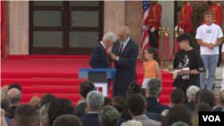 Në prani të shumë politikanëve, autoriteteve, ish drejtuesve të institucioneve të larta shqiptare, si dhe qytetarë të shumtë me flamuj amerikanë dhe shqiptarë në duar, kryeministri Edi Rama, i dorëzoi ish presidentit amerikan Klinton medaljen e “Yllit të Mirënjohjes për Arritje Publike”.