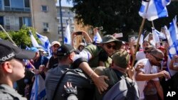 Të tjerë demonstruan jashtë selisë së Histadrutit, sindikatës më të madhe të punëtorëve të Izraelit, duke kërkuar që organizata të bëjë thirrje për një grevë të përgjithshme - një veprim që mund të paralizojë ekonominë e vendit. Një grevë nga kjo sindikatë në mars ndihmoi që zoti Netanyahu ta pezullonte në atë kohë planin për reformën gjyqësore.