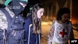 Hamasi publikoi një video që tregonte pengjet që dukeshin të tronditur, por kryesisht në gjendje të mirë fizike, ndërsa militantët e maskuar i çonin te automjetet e Kryqit të Kuq. Disa nga pengjet u dhanë lamtumirën militantëve. Një vajzë ishte me paterica dhe me këmben e majtë të mbështjellë.