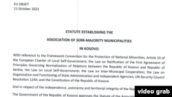 Partitë opozitare në Kosovë thanë se e kanë marrë projekt statutin e Asociacionit të komunave me shumicë serbe, i hartuar nga diplomatët perëndimorë, dhe i cili po mbahej nën një vello fshehtësie që nga 21 tetori, kur u ishte paraqitur udhëheqësve të Kosovës dhe Serbisë. Asnjëra nga partitë nuk bëri komente të menjëhershme rreth përmbajtjes së projekt statutit i cili përcakton rolin dhe përgjegjësitë e Asociacionit.