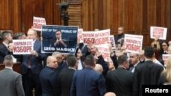 Gjatë seancës, ligjvënësit e opozitës refuzuan të bënin betimin, duke protestuar duke i rënë bilbilave, duke valëvitur pankarta dhe duke shkëmbyer fyerje me ata të koalicionit qeverisës.