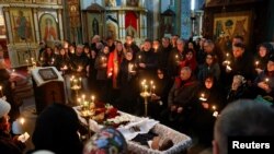 Një prift ortodoks udhëhoqi ceremoninë e shkurtër të lutjeve, ndërsa jashtë qëndronin mijëra njerëz që nuk ishin lejuar të merrnin pjesë në ceremoni.