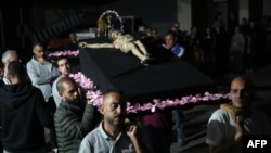 Dhjetra të krishterë të strehuar në Kishën e Familjes së Shenjtë në Gazë u mblodhën për të marrë pjesë në meshën e së Premtes së Mirë.