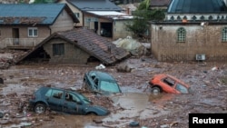Për shkak të përmbytjeve të së premtes, një gurore mbi Donja Jabllanicë u shemb dhe rrënojat mbuluan shtëpi dhe makina në fshat.