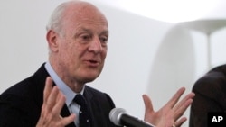 De Mistura zëvendëson të dërguarin e mëparshëm, Lakhdar Brahimi, i cili dha dorëheqjen nga ky post në fund të majit, pas dështimit të raundit të dytë të bisedimeve të Gjenevës dhe zhvillimit të zgjedhjeve presidenciale në Siri.